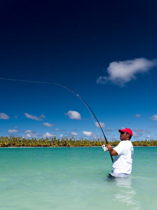 Franck a la sagesse de ne pêcher que ce dont Cocoperle Lodge a besoin ; il n’est donc pas rare que le principe du “no kill” permette à ces seigneurs des mers de rejoindre l’océan, une fois débarrassés de leur hameçon. Bref, la ressource est gérée avec intelligence, tout comme d’ailleurs les récoltes d’oursins ou de ma’oa sur le récif. Ni surpêche, ni gaspillage sont les leitmotivs de Franck. Moyennant quoi, depuis une décennie, les pêcheurs peuvent toujours se rendre à Ahe, devenu leur temple, avec la certitude de vivre des moments intenses qu’ils n’auront pas fini de raconter à leur retour !