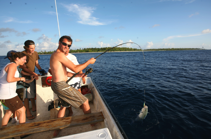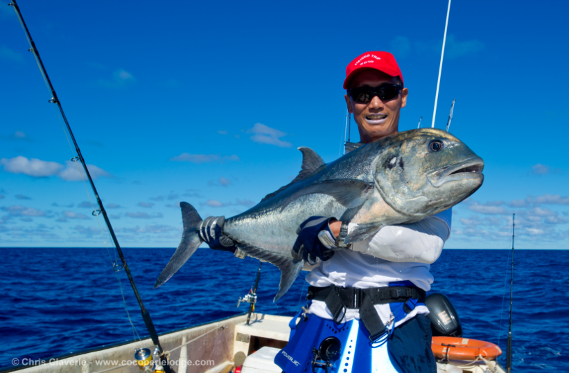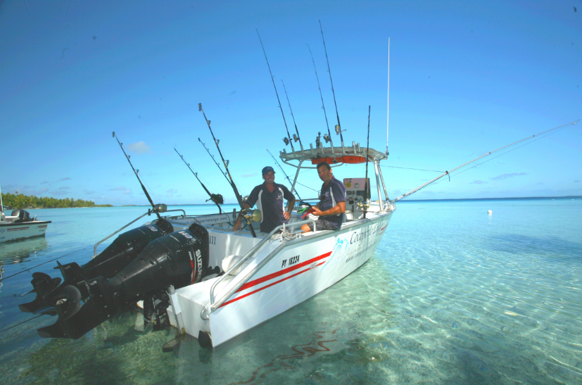 -Pêche à l’extérieur du récif au gros (pêche à la traîne, au moulinet, au moulinet électrique par grands fonds…). 9 000 Fcfp/demi-journée