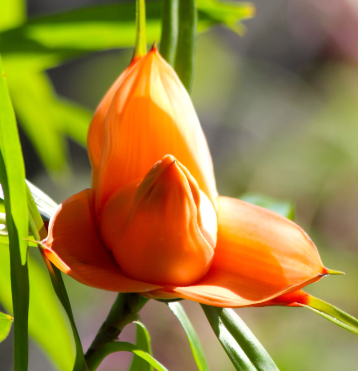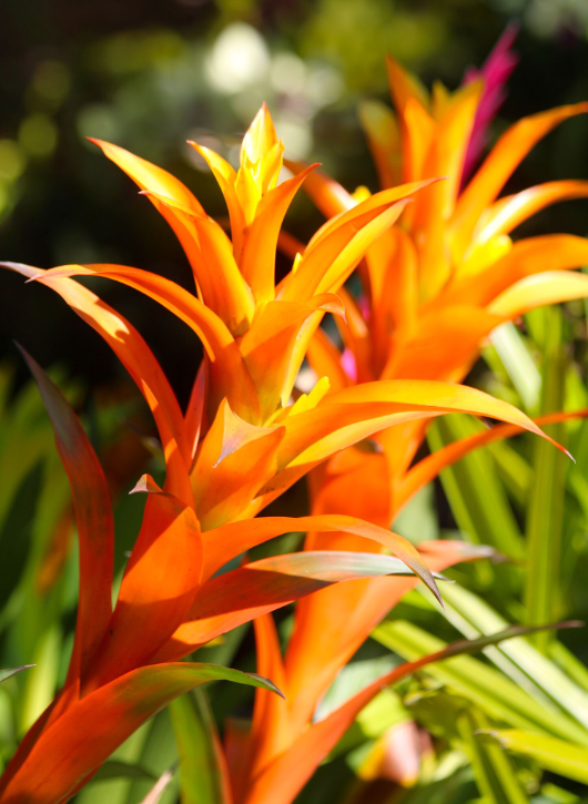 Dans la très vaste famille des Broméliacées, le genre Guzmania produit de très belles inflorescences ; celles-ci, orange vif, en sont un exemple.