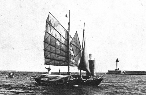 On le retrouve dix ans plus tard loin de la savonnerie familiale, en Chine, où il va pouvoir donner corps à son goût pour l’aventure : avec un camarade, surnommé Tati, il construit une jonque, le “Fou Po I” ; ils remontent le Yangzi Jiang mais, une fois en mer, voient leur beau rêve se fracasser sur les côtés de ce qui ne s’appelle pas encore Taïwan (Formose).