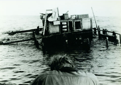 Si le bateau se comporte au moins aussi bien que le “Kon Tiki” (qui n’était pas manoeuvré par des marins), en revanche, et comme c’était prévisible, les cyprès, gorgés d’eau, s’enfoncent de plus en plus. Eric de Bisschop est, pour sa part, très malade, cloué sur sa couchette. Mi-juin, la cabine est sous vingt centimètres d’eau. A 80 milles des Marquises, avec des vents contraires, le “Tahiti Nui I” coule lentement mais sûrement et ne peut espérer rejoindre la Terre des Hommes.