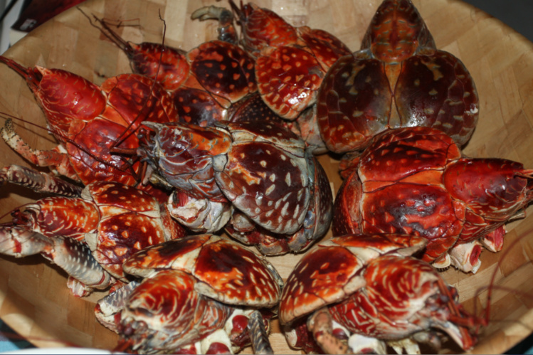 Après dîner, chasse au kaveu (le crabe de cocotier a une poche qu’on cuit à l’eau. Une fois refroidie, le “pâté” a le goût d’un foie gras “marin”.
