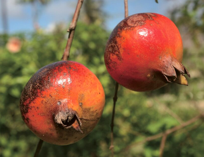 Le grenadier est un arbuste de la famille des Lythracées, originaire d’Asie centrale. Il aime les terrains bien drainés et les saisons marquées. C’est pour cela qu’à Rurutu, les fruits font plus rouges et plus goûteux qu’à Tahiti, au climat trop chaud. Le nom de grenade vient du latin granatus, “abondant en grains”. Le fruit a donné son nom à la ville espagnole de Grenade. On compte plus de 2 000 variétés et cultivars de la grenade. Pour obtenir de beaux fruits, il faut tailler l’arbuste et limiter le nombre de fleurs.