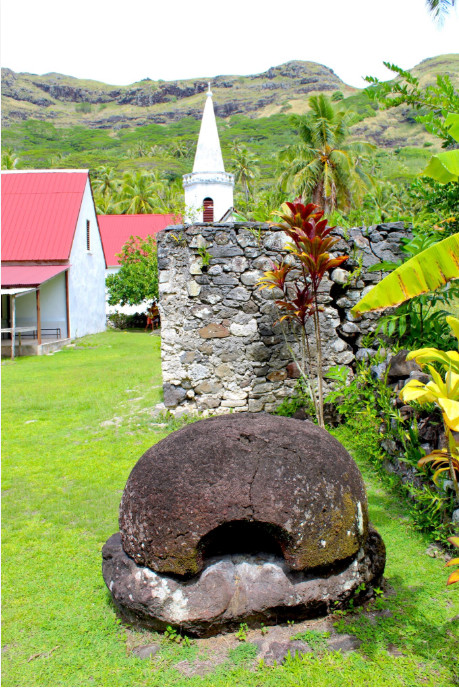 Cap ensuite sur Akamaru et sa splendide église romane à double clocher, dédiée à Notre-Dame de Paix (achevée en 1844). Une merveille parmi les merveilles des Gambier. C’est d’ailleurs ici que vivait le père Honoré Laval, sa maison, avec sa cave et son four à pain, se dressant juste à côté de l’édifice religieux.