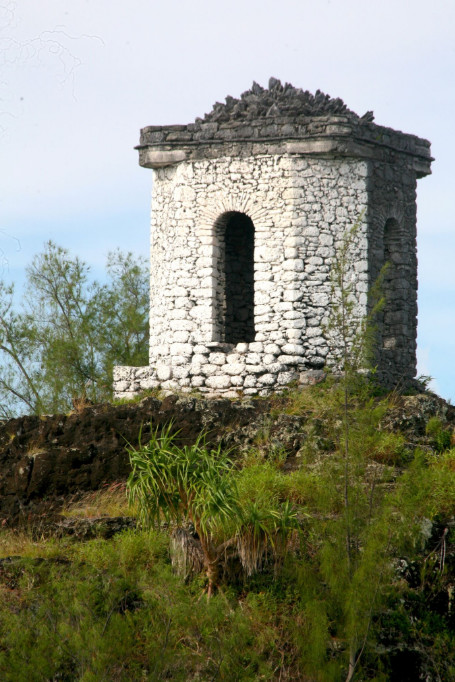 L’escale suivante est pour l’île de Aukena, petite, mais riche en monuments. Le plus emblématique est la tour de guet qui domine un éperon s’avançant dans le lagon, face à Rikitea. Il permettait aux navires arrivant « à Gambier » (comme on disait alors) de se repérer et surtout d’être repérés et donc annoncés.