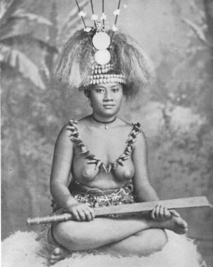 Taupou, superbe jeune femme du village appelé par les Allemands Schmuck. Samoanes comme Samoans portaient toujours des coiffes très raffinées.