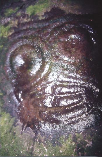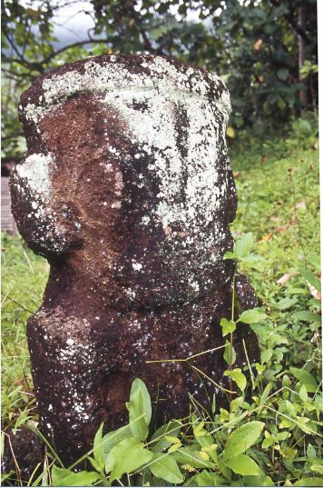 Ces trois tiki de belle taille sont situés dans une zone boisée, donc victimes de l'humidité ambiante. Ne vous avisez pas, pour leur redonner une seconde jeunesse, de les frotter ou de les brosser pour en enlever mousses et lichens, vous ne feriez que hâter le vieillissement de ces sculptures exceptionnelles.