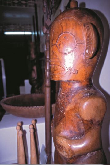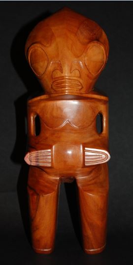 Un autre tiki Moke (contemporain) se trouve au British Museum de Londres, en bois de miro (hauteur : 33 cm)