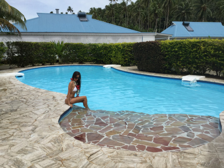 Voilà maintenant huit ans qu’Eric et Nicole ont ouvert, sans tapage, leur petit hôtel aux toits bleus et aux murs blancs à côté du très tranquille petit village de Fareatai (120 habitants). C’était une volonté farouche de Nicole que de privilégier ce blanc qui lui avait tant manqué là où elle officiait auparavant, dans un petit hôtel de luxe sur un motu de Taha’a.