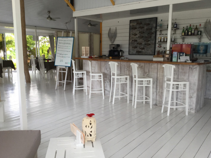 Après un peu plus de quatre années passées sur un motu de Taha’a, rien ne leur faisait peur, d’autant qu’Eric avait déjà bourlingué en tant que moniteur de plongée, en Afrique et aux Antilles. De leurs 6 000m2 de néant sont donc sortis neuf bungalows tout confort, mais aussi trois autres bungalows plus vastes dans le même style, dont l’un est le centre de vie de l’hôtel, puisqu’il concentre le bar, une petite boutique, la salle du restaurant, la large et moderne cuisine et le bureau.