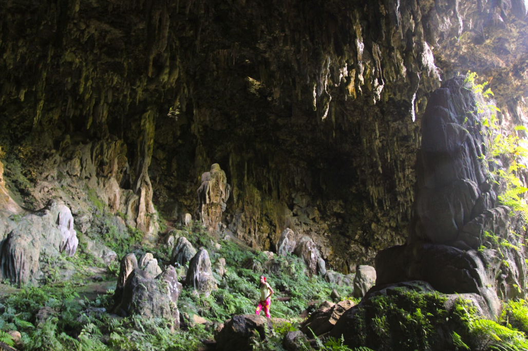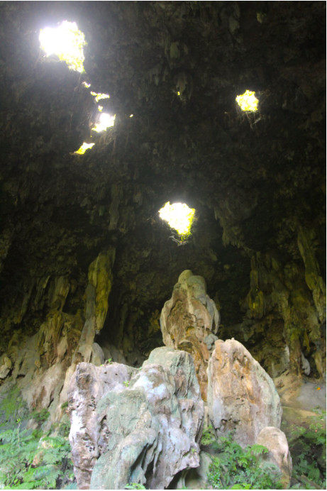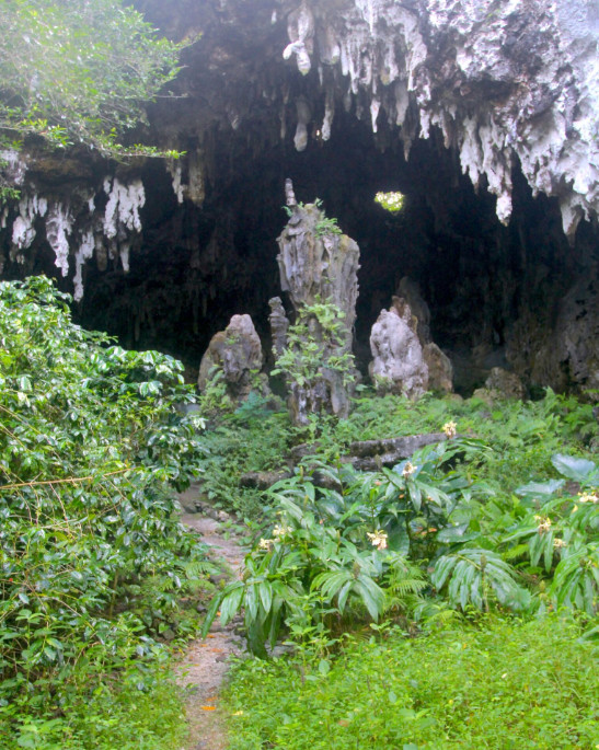 Du fait de ce réveil du volcan, l’ancien récif frangeant qui ceinturait l’île, composé de carbonate de calcium, exondé pendant des centaines de milliers d’années, a été livré aux eaux de pluie et de ruissellement, très abondantes sous ce climat, des eaux qui l’ont dissous en maints endroits, créant notamment de nombreuses grottes.