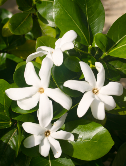 Pour des conditions de floraison idéale, plus le sol est corallien, plus l'insolation est forte, plus le pied est âgé (développement des branches) et plus les fleurs seront nombreuses et parfumées. Le nombre de pétales varie de cinq à dix, voire plus, avec une moyenne de sept pétales par fleur.