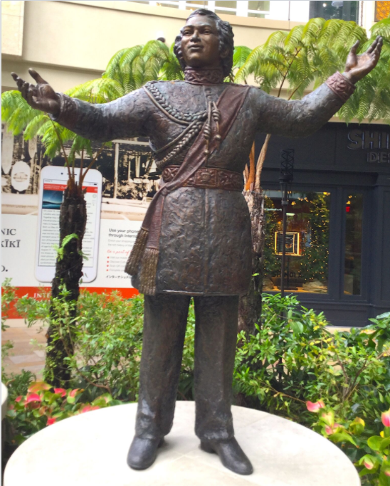 HAWAII, le 16 février 2018. Waikiki est sans aucun doute le symbole même du tourisme de masse où se mêlent argent, « bling bing » et consommation effrénée. Mais il y a plus entre Kuiho av. et Kalakaua av. ; les concepteurs de cet espace ont voulu donner une place de choix au passé en rendant hommage, à travers des bronzes imposants, aux grandes figures du XIXe siècle, qui contribuèrent à faire entrer Hawaii dans la modernité. Cette semaine, nous vous présentons les principaux membres de la famille royale ; la semaine prochaine, nous laisserons place à des personnages plus contemporains ou à des thèmes plus modernes.