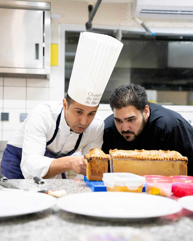 Sa recette de pâté-croûte 2023 est “plus aboutie”. Cédric Robin précise qu’il a appris seul à faire cette charcuterie pâtissière. (Fabriqué à l’origine par les pâtissiers, le pâté-croûte était un moyen de conserver la viande.) “J’en ai raté pas mal”, plaisante-t-il. Mais, à force d’essais et de tests, il a fini par mettre au point une recette qui fait la différence. Il a marié de la caille, du foie gras, du magret de canard et de la farce à base de cochon, de lard de Colonnata et de la joue de porc confite. Les deux frères Mathieu et Jacques Lagarde, des chefs qui ont participé à la dernière saison de Top chef et ont été invités au championnat de Tahiti de pâté-croûte, disent avoir été agréablement surpris par la qualité des créations sur le territoire. À l’international, Cédric Robin a toutes ses chances.
