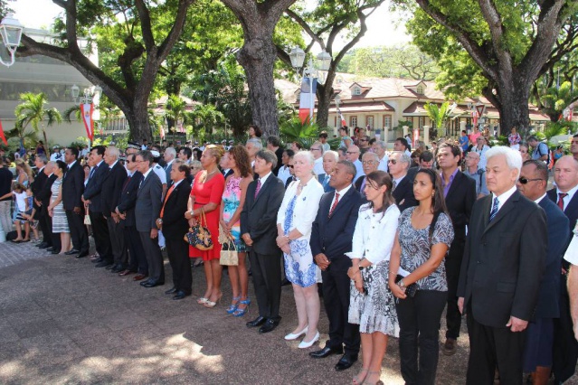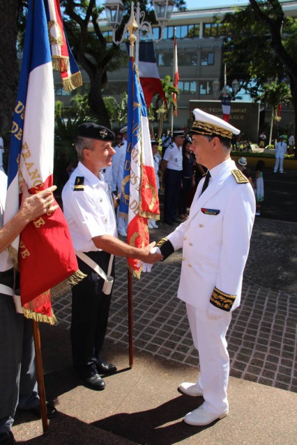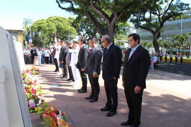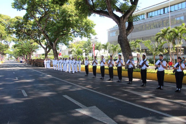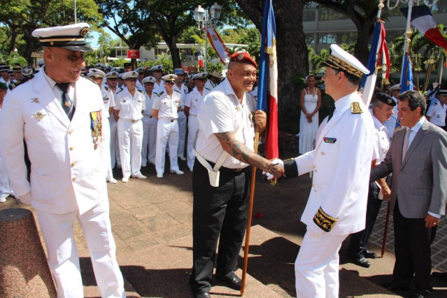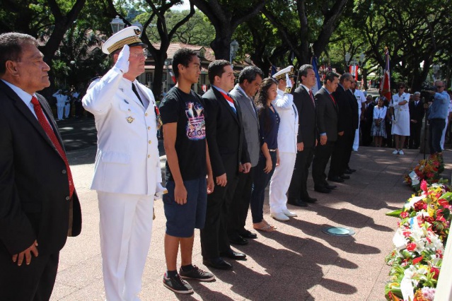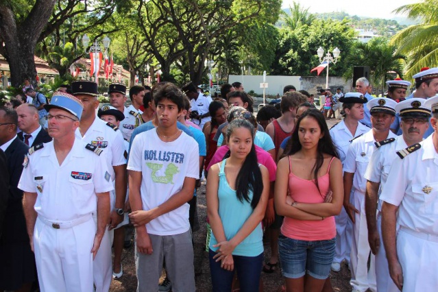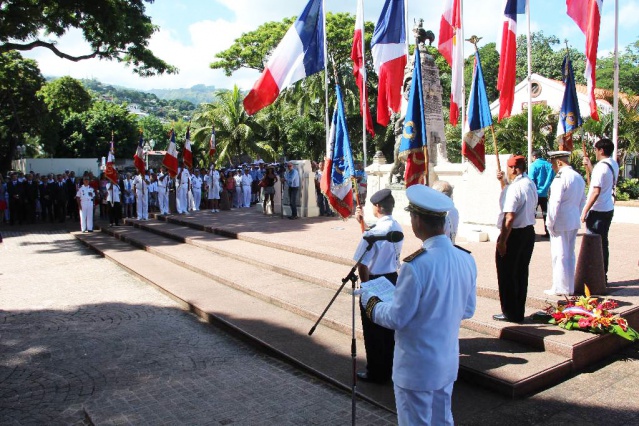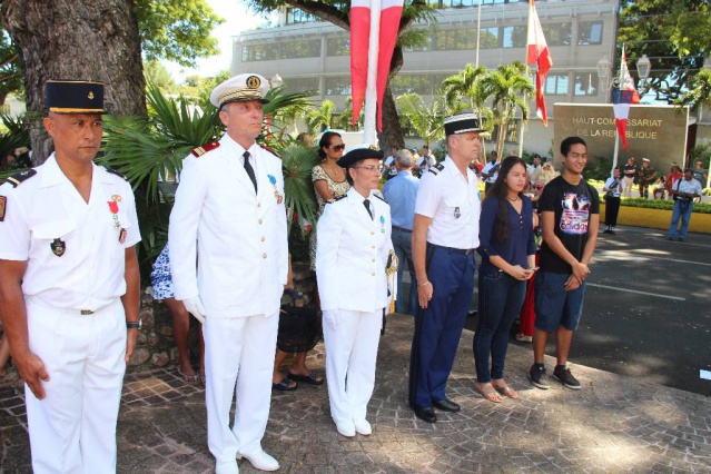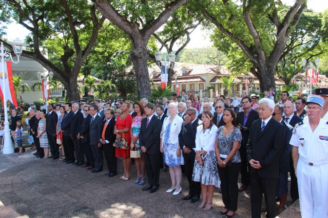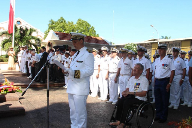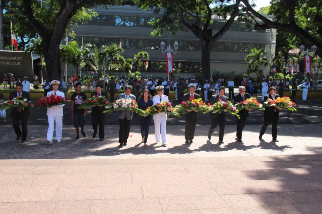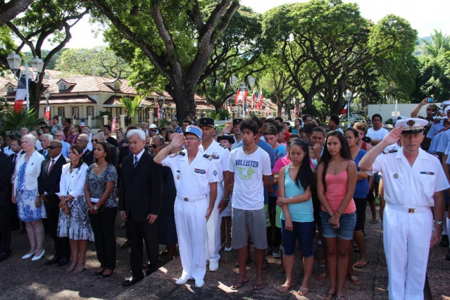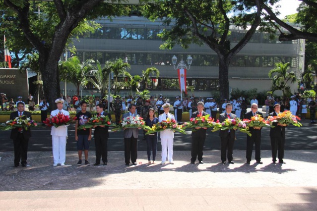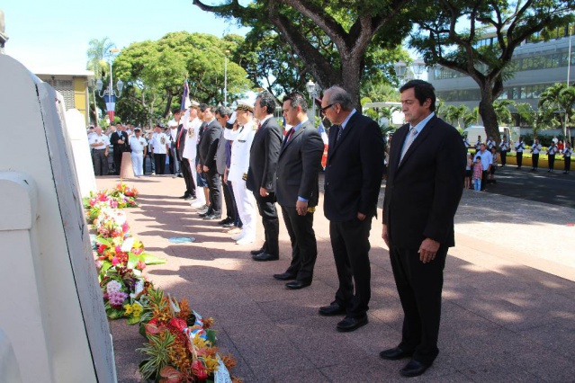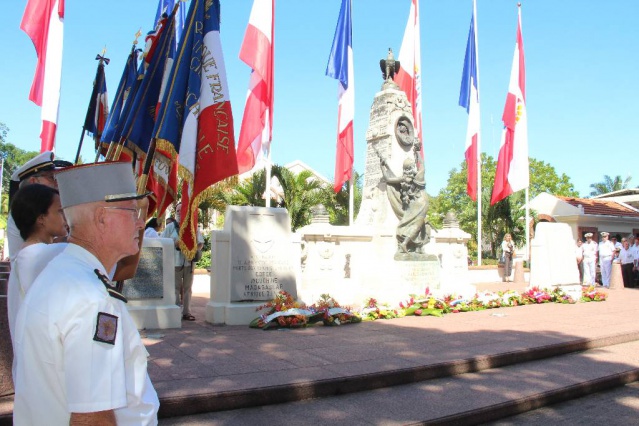 Elle a été marquée par une cérémonie militaire à 8h30, devant le Monument aux Morts de Papeete, avenue Pouvanaa a Oopa, à laquelle ont participé les forces armées en Polynésie française aux ordres du Colonel Thierry DAPSENS, représentant le Contre-Amiral, Bernard- Antoine MORIO de L’ISLE.