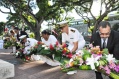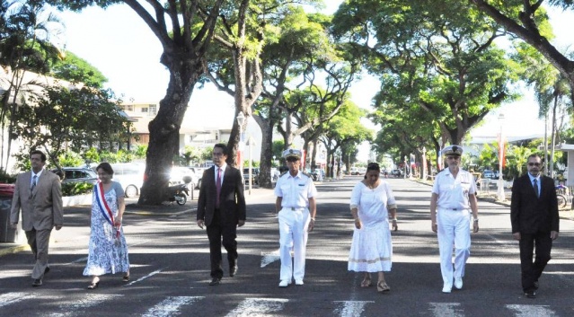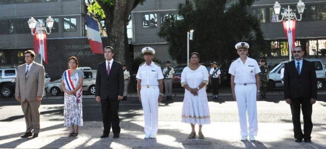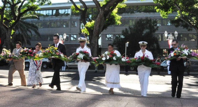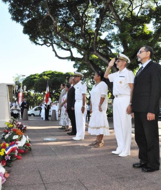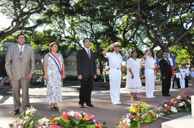 M. Gilles CANTAL a déposé une gerbe au Monument aux Morts de Papeete, ainsi que M. Marcel TUIHANI, Ministre du logement, des affaires foncières, de l'économie numérique et de l'artisanat, représentant le Président du Pays, Mme Vaiata FRIEDMAN , 2ème Vice-présidente de l'Assemblée de la Polynésie française, Mme Danièle TEAHA, Adjointe au maire de Papeete, le médecin-chef M Damien LEJEUNE, représentant l'Amiral COMSUP, M. Patrick GALENON, Conseiller économique, social et environnemental et M. Angelo FREBAULT, Président du Conseil Economique, Social et Culturel.