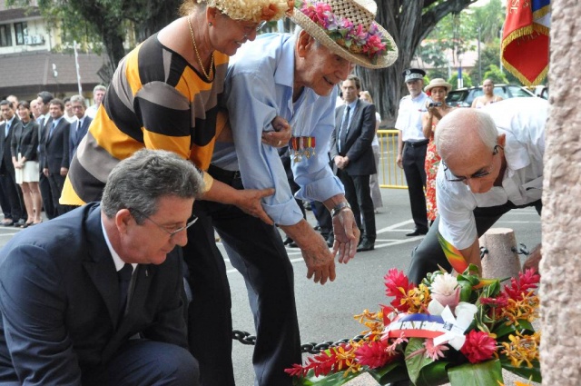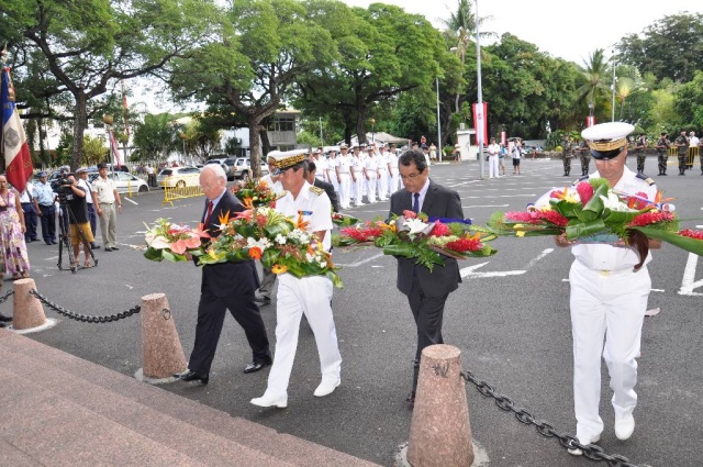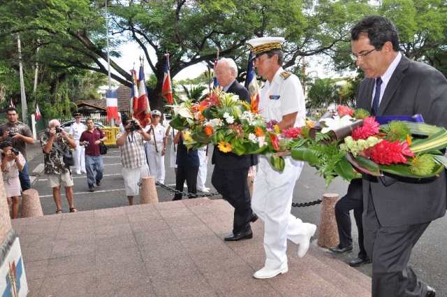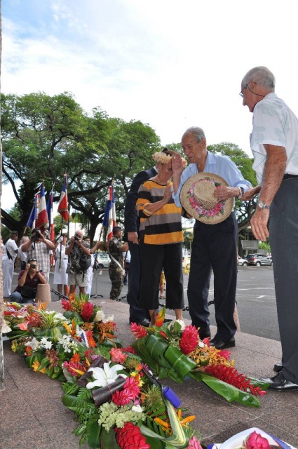 M. Jean-Pierre LAFLAQUIERE, Haut-Commissaire de la République, a présidé, ce matin, la cérémonie organisée à l'occasion du 73 ème anniversaire de l'Appel du 18 juin 1940 du Général de Gaulle, à la Stèle de la France Libre, aux côtés de M. Gaston FLOSSE, Président de la Polynésie française, de M. Édouard FRITCH, Président de l'Assemblée de la Polynésie française, de M. Michel BUILLARD, Maire de Papeete, du Colonel Thierry DAPSENS, adjoint interarmées, représentant l'Amiral COMSUP et de M. Ronald TEROROTUA, représentant le Président du CESC.