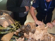 Comme dimanche, où les douanes ont saisi près de 14 kilos de singe, d'agouti (rongeur), de pangolin ou de thon en état de décomposition avancée.