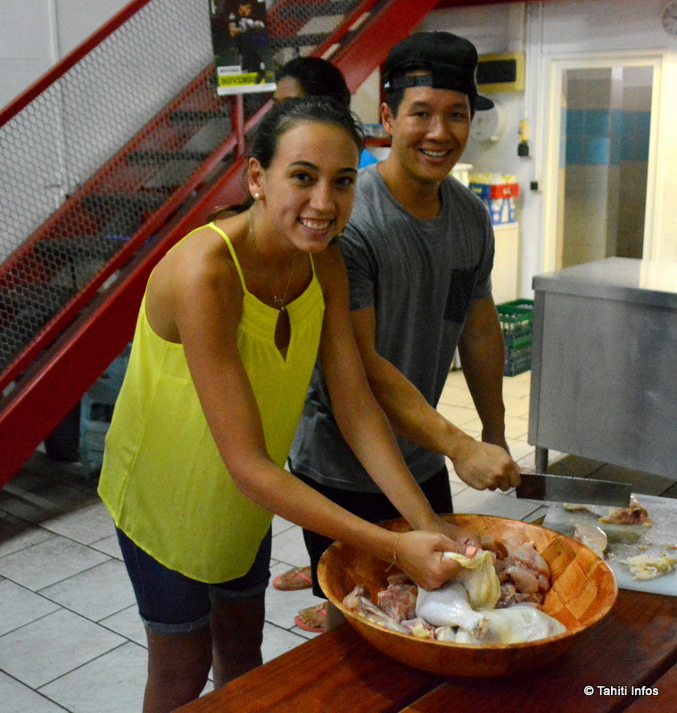 Nous avons rencontré les élèves le soir du jeudi 10 novembre, alors que la classe était occupée à la cuisine. "L'objectif est de préparer un repas pour cinquante sans-domiciles fixes. Nous le préparons dans le quartier Tevaiete, dans la cuisine du Secours Catholique, ensuite nous irons le distribuer avec le Bus de la Miséricorde. Nous irons voir les SDF qui sont un peu timides et qui ne viennent pas aux repas organisés, nous irons les rencontrer entre Arue et Papeete" nous explique une élève. Il leur aura fallu une semaine pour organiser la distribution, puis ont été à la cuisine et en maraude de 16h à 22h jeudi soir.