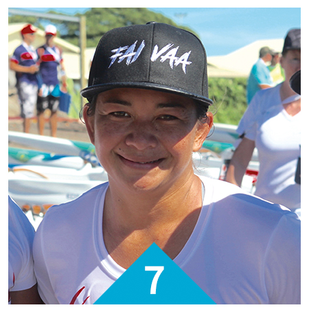 « Promouvoir le va’a féminin à l’étranger, j’y ai notamment contribué en participant en V1 aux Te Aito Taratoni (NC), Farani (France), Aotearoa (NZ) et récemment à la Catalina Race aux Etats Unis avec l’équipe de Teva. J’adore le contact avec l’eau et le dépassement de soi, d’où mon implication dans le Waterman Tahiti Tour regroupant trois disciplines que sont le paddle, le prone et la natation. Etre sur l’eau presque tous les jours me permet de me détendre après le travail. »