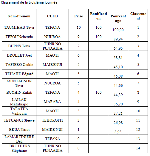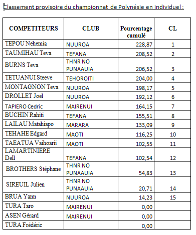 Au final, c’est Tepou NEHEMIA qui prend la tête du classement provisoire grâce à sa régularité.