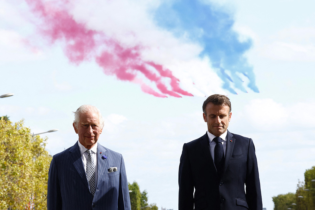 Paris, France | AFP | mercredi 20/09/2023 - Le roi Charles III a participé à une cérémonie militaire à l'Arc de Triomphe et redescendu l'avenue des Champs-Elysées mercredi, au premier jour d'une visite d'Etat, empreinte de solennité et de faste, pour célébrer la relance de l'amitié franco-britannique après les turbulences du Brexit.