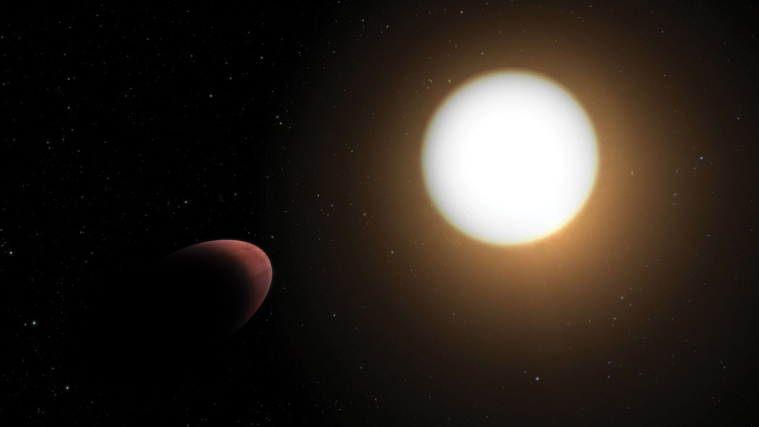 Paris, France | AFP | mardi 11/01/2022 - Le satellite d'observation des exoplanètes Cheops a permis de révéler pour la première fois la déformation d'une planète, -proche de celle d'un ballon de rugby-, par l'effet d'attraction qu'elle subit à cause de son étoile.