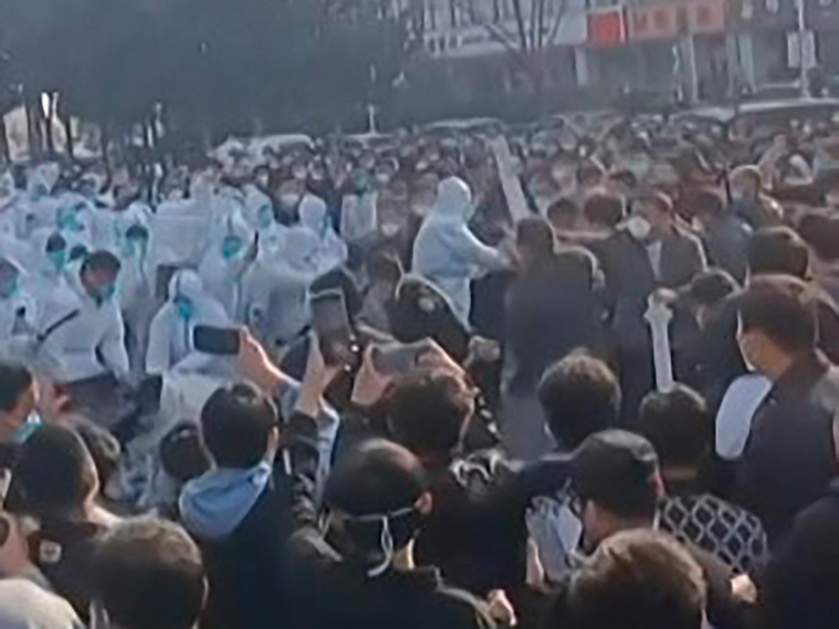 Pékin, Chine | AFP | jeudi 24/11/2022 - Zhengzhou, ville du centre de la Chine qui héberge une immense usine d'iPhone, a ordonné jeudi le confinement de six millions de personnes après une flambée de Covid-19 qui a entraîné de violentes manifestations sur le site industriel.