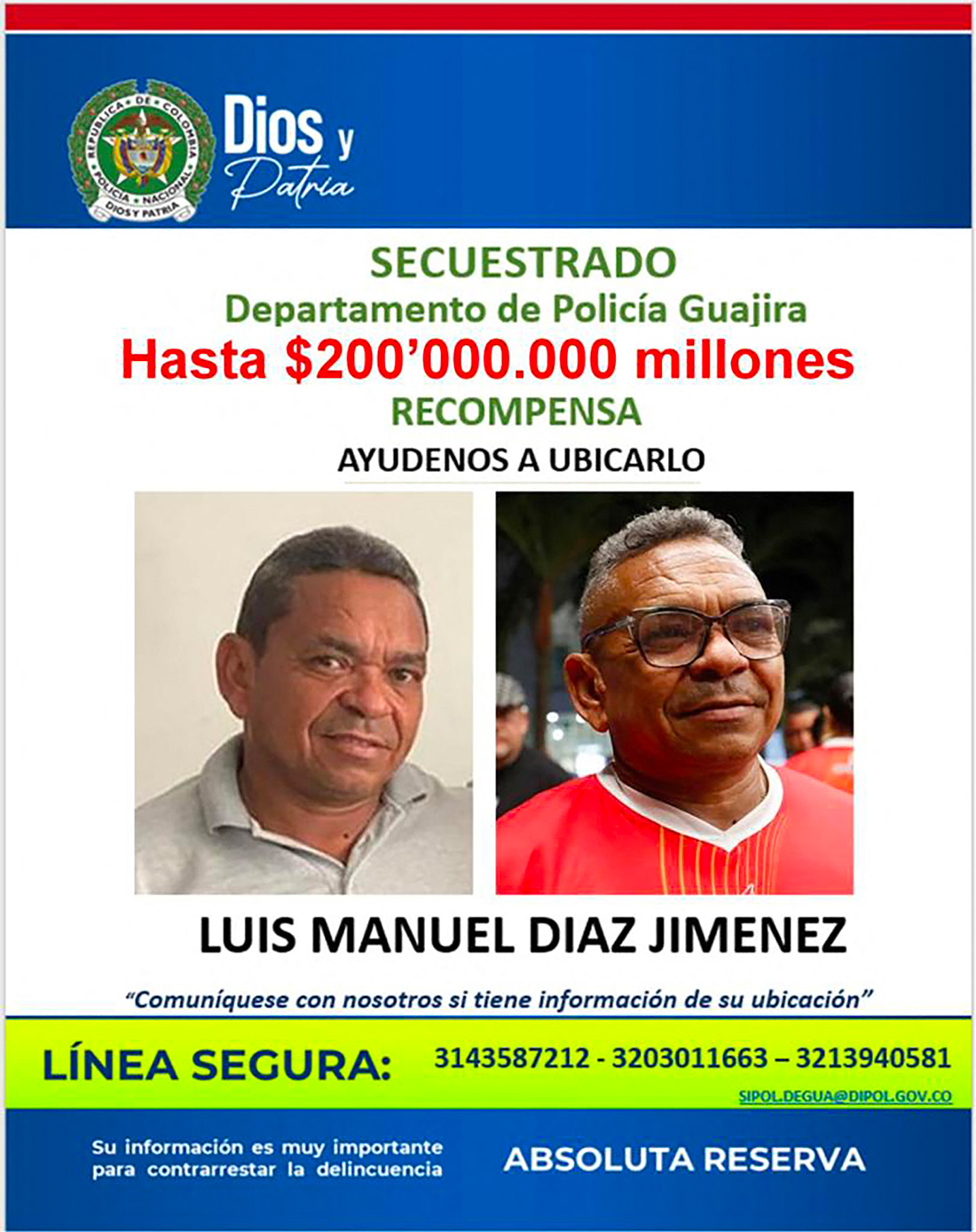 L'armée a annoncé avoir mis en place des checkpoints et mobilisé des hélicoptères et un avion radar pour tenter de retrouver Luis Manuel Diaz, ancien entraîneur bénévole de la seule école de football de Barrancas, une ville de quelque 38.000 habitants dans lequel son fils a fait ses débuts.