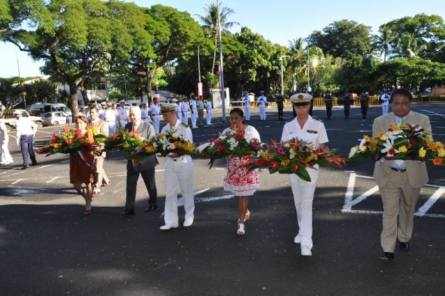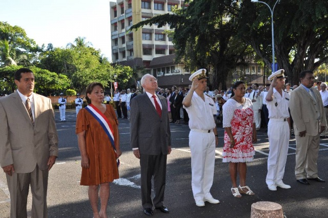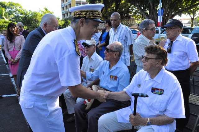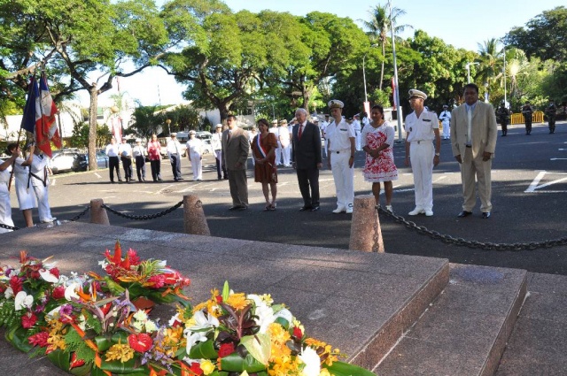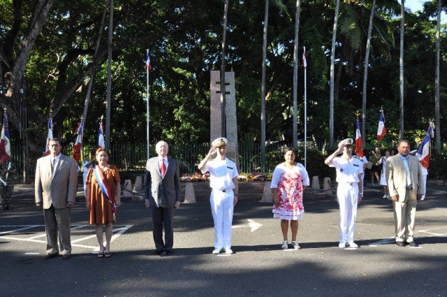 PAPEETE, le 18 JUIN 2014. (COMMUNIQUE) M. Lionel BEFFRE, Haut-Commissaire de la République, a présidé, ce matin, la cérémonie organisée à l'occasion du 74 ème anniversaire de l'Appel du 18 juin 1940 du Général de Gaulle, à la stèle de la France Libre, Place Tarahoi, aux côtés de M. Gaston FLOSSE, Président de la Polynésie française, de Mme Vaiata FRIEDMAN, 2ème vice-présidente de l'Assemblée de la Polynésie française, de Mme Danièle TEAHA, 2ème adjointe au maire de Papeete, du Commissaire en Chef de 1ère classe Louis JEHL, représentant l'Amiral COMSUP, de M. Makalio FOLITUU, 2ème vice-président du Conseil économique, social et culturel et de M. Patrick GALENON, Conseiller économique, social et environnemental.