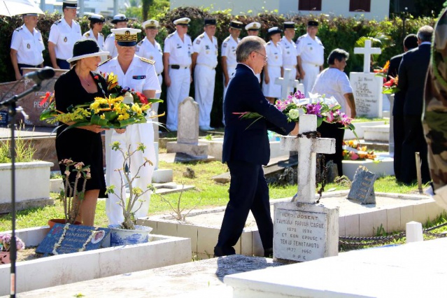 PAPEETE, le 25/04/2017 - Le Haut-Commissaire de la République, René Bidal a présidé la commémoration de l'ANZAC Day, organisée ce mardi 25 avril 2017, au cimetière de l'Uranie, par M. Éric MALMEZAC, Consul honoraire de Nouvelle-Zélande et par M. Marc SIU, Consul honoraire d'Australie, en présence de Mme Sandra HENDERSON, Consule générale adjointe d’Australie en Nouvelle Calédonie et des autorités de l’État et du Pays.