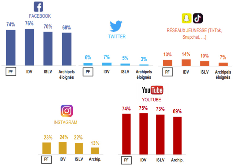 En témoigne l’usage des outils numérique en Polynésie. "Ce qu’on fait le plus, c’est regarder des vidéos en streaming gratuit", indique Karl Tefaatau, à la tête de la Direction générale de l’économie numérique. Ce qu’on fait le moins ? "Lire la presse, notamment lorsqu’elle est payante." Lire sur internet d’ailleurs, "on ne le fait pas". En revanche, on passe énormément de temps sur les réseaux sociaux : 96% des internautes polynésiens y sont abonnés et de manière écrasante sur YouTube et Facebook. Les deux géants de la Silicon valley concentrent effectivement, à part égale, 74% des internautes (contre 60% à l’échelle nationale) et 55% y consacrent au moins une heure par jour.