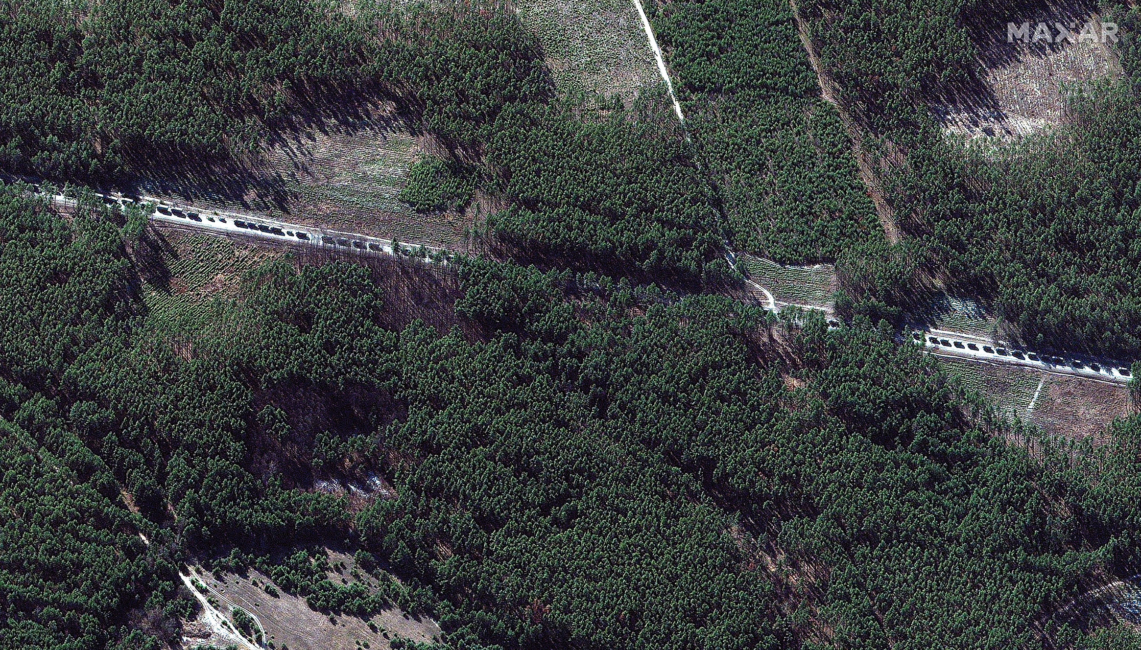 Le 23 février, Jeffrey Lewis, de l'Institut Middlebury en Californie, pointait un bouchon sur Google Maps, là où le convoi militaire avait été repéré par Capella Space. Selon lui, il s'agissait probablement des civils bloqués par les barrages routiers mis en place pour laisser passer le convoi.