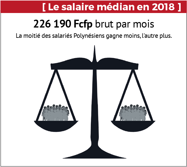 Car on s'attendrait à un revenu médian plus élevé. La Polynésie a la réputation d'avoir de très hauts salaires, alors que ce chiffre est finalement très proche du salaire minimum de 152 914 Fcfp bruts (en net, quelques 133 000 francs).