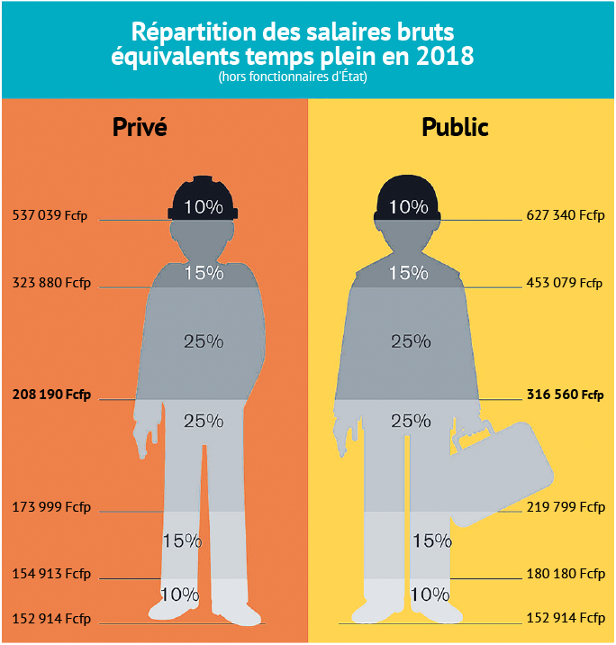 PAPEETE, le 24 juillet 2019 - À partir de quel salaire faites-vous partie de la moitié des salariés les mieux payés de Polynésie ? Combien faut-il gagner pour faire partie du « top 10 % », les 10 % des salariés les mieux payés ? Grâce à nos infographies basées sur les chiffres officiels de l'ISPF fournis par la CPS, comparez facilement votre salaire au reste de la population.