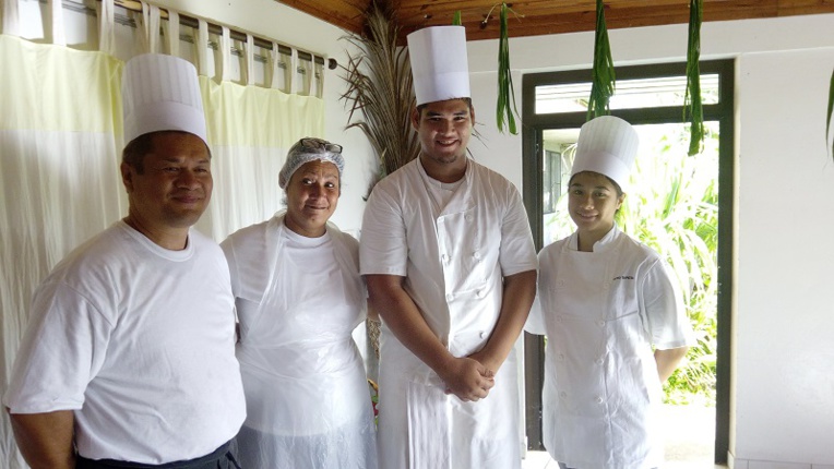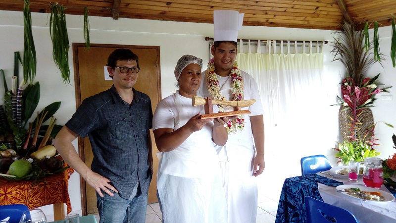 TUBUAI, le 26 mars 2019 - Tous deux ont participé au concours "PMH Show devant" 2019 (Petite moyenne hôtellerie) qui a été organisé la semaine dernière au collège de Mataura à Tubuai. Deux équipes de la section PMH de l'établissement étaient en lice pour tenter de décrocher le premier prix. Après 2h30 de travail, Léonard et sa maman ont remporté les faveurs du jury.