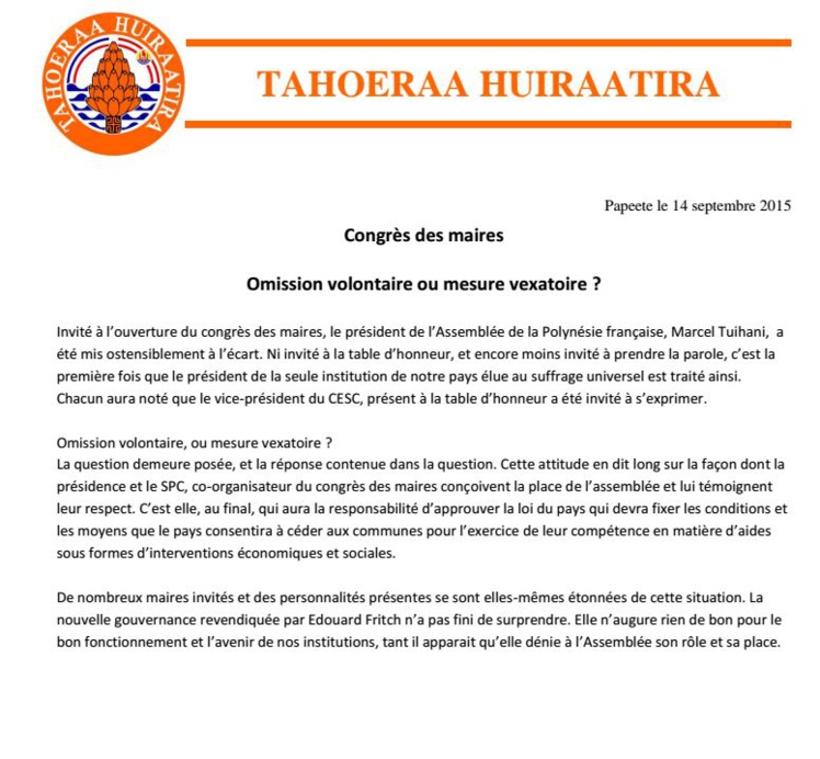 Congrès des maires Omission volontaire ou mesure vexatoire ?