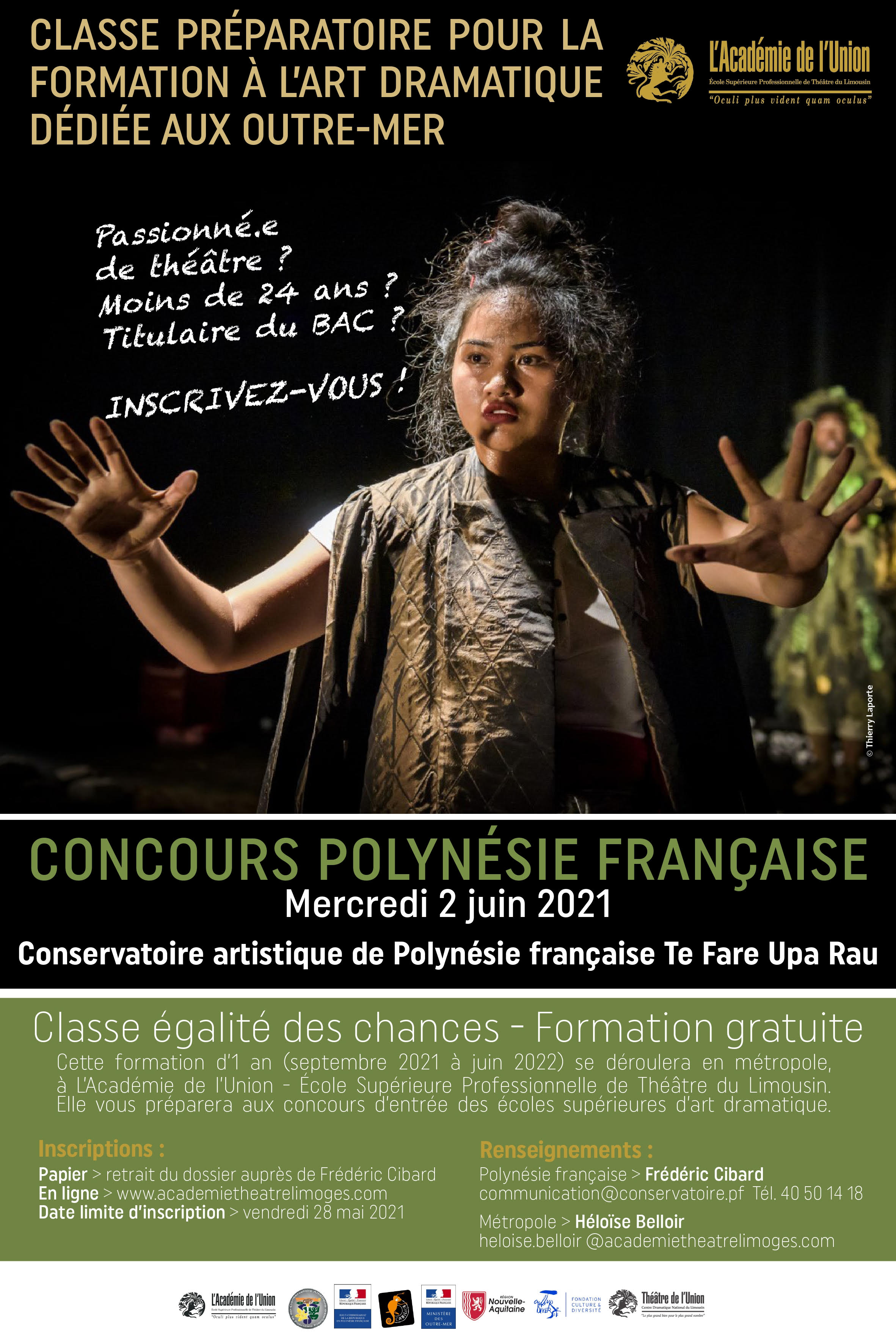 La deuxième édition du concours de théâtre pour l’outremer va être organisée cette année en étroite collaboration avec l’Académie de l’Union qui est l’école supérieure professionnelle de théâtre du Limousin. Ce concours ouvre à une année d’enseignement gratuite en métropole (les billets d’avion sont également pris en charge) pour préparer les concours d’entrée des écoles nationales de théâtre. "C’est une chance pour tous les Polynésiens. L’enseignement est professionnel, sérieux, ouvert. Il propose un travail sur le corps, le physique mais aussi du répertoire classique", décrit Christine Bennett, professeure d’art dramatique au CAPF. S’ajoute une formation littéraire et d’écriture.