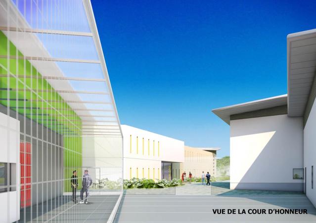 Le projet tient compte également des exigences en termes de développement durable fixées dans le cahier des charges, permettant de conjuguer qualité des conditions de travail du personnel pénitentiaire, performance énergétique et respect de l’environnement. Il est notamment une station d’épuration des eaux usées, sans rejet dans le lagon, et une production d’eau chaude solaire. L’architecture des constructions est conçue pour favoriser la ventilation naturelle et assurer une protection solaire des locaux, s’adaptant ainsi aux conditions climatiques locales, dans l’objectif d’optimiser les consommations énergétiques et d’apporter un confort thermique indispensable.
