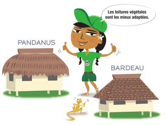 C’est sans aucun doute la toiture la mieux adaptée à la Polynésie française : les toitures en pandanus ou en niau permettent une bonne réflexion du rayonnement solaire, ont un faible coefficient de conductivité thermique et sont naturellement ventilées.