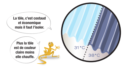 Le choix de la couleur de la tôle, l’aménagement d’un comble, l’isolation de la toiture, peuvent permettre de baisser la température de votre fare de près de 4°C le jour.