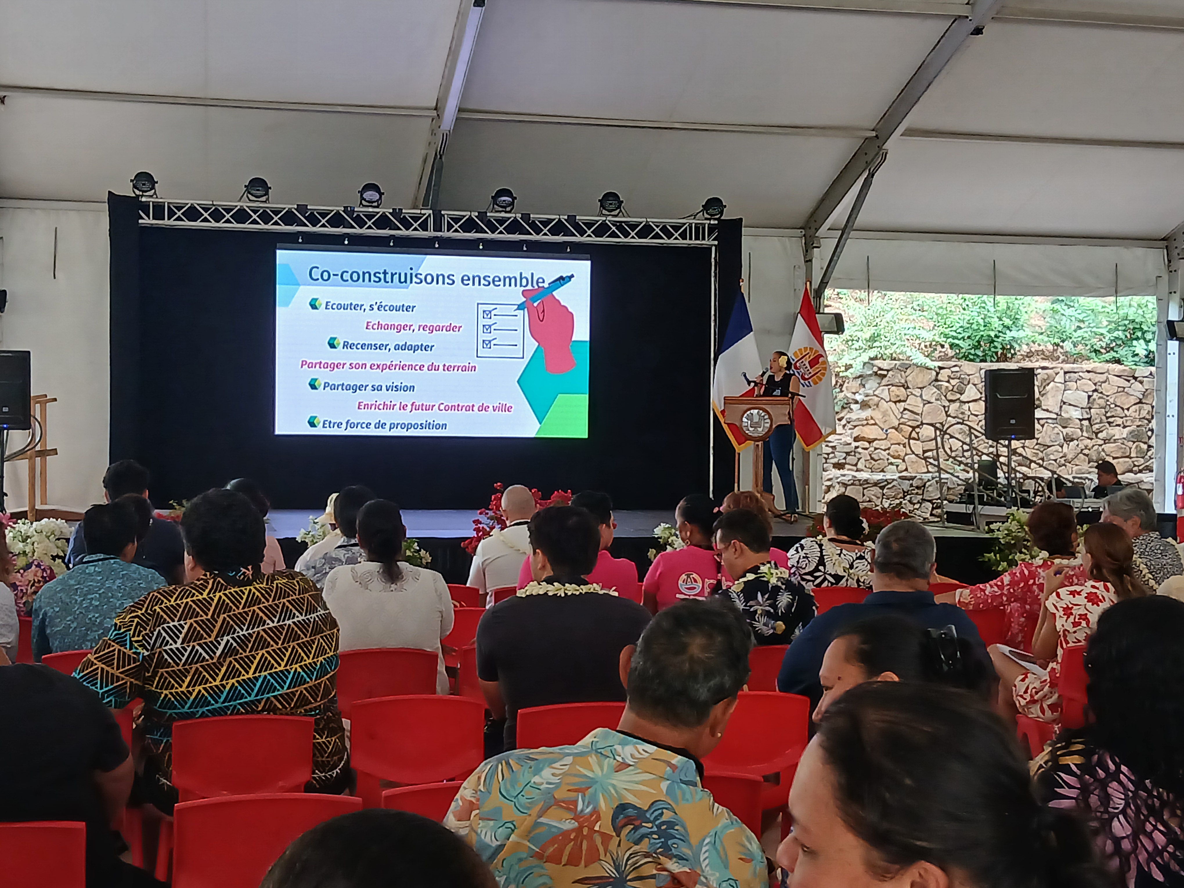 Répartis en une dizaine d'ateliers sous le chapiteau de la présidence, élus communaux, coordinateurs de quartiers, agents du Pays et techniciens ont échangé et partagé leurs expériences pour être force de proposition dans la rédaction de ce futur Contrat de ville. “On est sur des propositions d'idées, d'échanges sur les spécificités d'une commune à une autre pour voir ce qui marche et ce qui marche moins bien”, a souligné Manavarii Ravetupu.