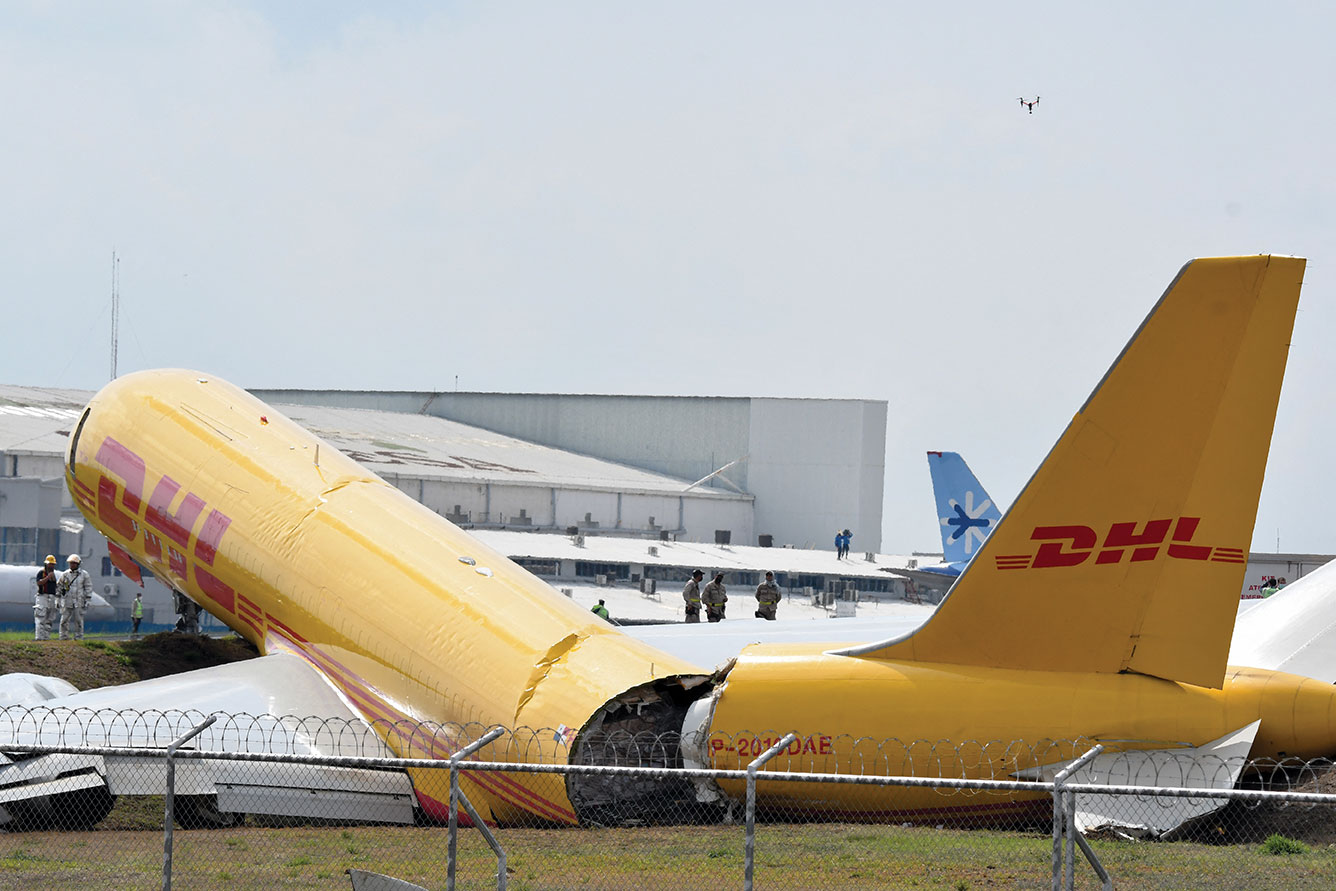 San José, Costa Rica | AFP | jeudi 07/04/2022 - Un avion-cargo de transport de courrier et de colis s'est cassé en deux jeudi lors d'un atterrissage d'urgence sur la piste de l'aéroport de San José, au Costa Rica. L'accident n'a pas fait de victime mais a provoqué la fermeture temporaire de l'aéroport, ont indiqué les autorités.