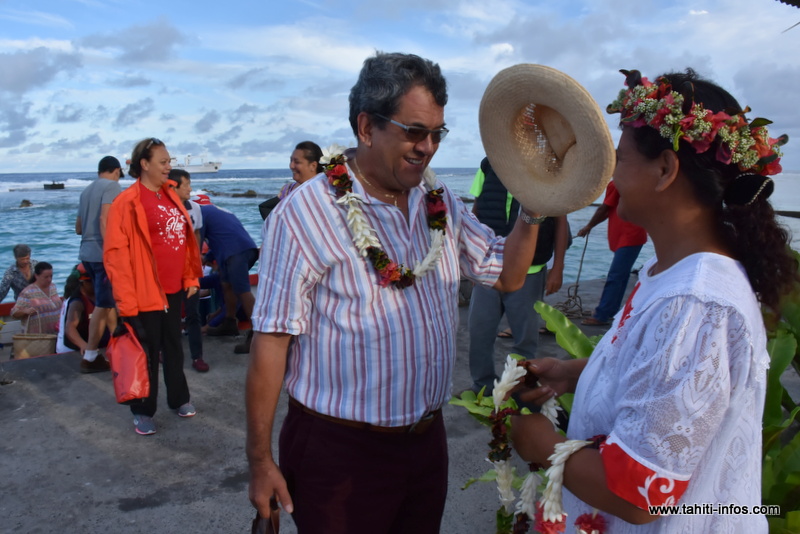 "Notre île est petite mais nos problèmes sont grands". C’est par ces mots lancés en tahitien qu’Henri Brothers a d’emblée mis en perspective les soucis du quotidien de la petite communauté de Maiao, dans son allocution d’accueil, mercredi matin. Les 353 âmes qu’il administre aujourd’hui depuis 36 ans sont sur le pied de guerre depuis quatre jours pour recevoir dignement la délégation gouvernementale conduite par Edouard Fritch et la suite de 132 personnes qui l’accompagne. Après avoir appareillé de Motu Uta la veille au soir, le Tahiti Nui a embarqué dans la nuit 87 visiteurs à Moorea, la commune mère de Maiao. Evans Haumani, le maire de Moorea, ne fait pas partie du déplacement, empêché à la dernière minute. Mais une dizaine d’élus du conseil municipal, dont John Toromona, sont du voyage. Cinq heures de navigation et voici le cargo mixte de la flottille administrative au mouillage depuis l’aube au large de Maiao. Accueil à quai, cortège de pick-up jusqu’à la bourgade de l’île... Sur place, il n’est pas encore 7 heures et les enfants viennent d’entonner l’hymne polynésien et la Marseillaise. C’est jour de fête, au petit village de Taora o Mere. Dans les coulisses de la mairie, on s’active pour préparer le petit déjeuner d’accueil. Un grand repas, simple mais copieux, sera également offert à la mi-journée : de mémoire d’anciens, c’est la toute première fois qu’un président en exercice se déplace officiellement pour rencontrer la population de l’île. Tout le monde est mobilisé.