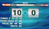 RIO DE JANEIRO, 20 juin 2013 (AFP) - L'Espagne, en écrasant Tahiti 10-0 dans la Coupe des Confédérations, a établi le nouveau record d'écart de buts dans une phase finale de tournoi Fifa (en sélection A), jeudi au Maracana de Rio de Janeiro.