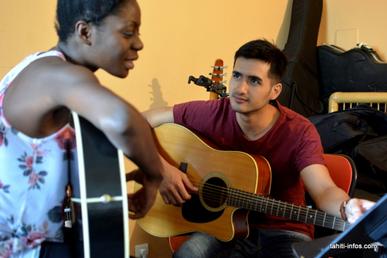 PAPEETE, le 21 aout 2017 - Le musicien Silvio Cicero, plus connu pour ses chansons à la radio et son occupation des scènes de Tahiti, est également professeur de guitare. Dans son local au quartier Paofai il accueille les élèves de tous les âges.