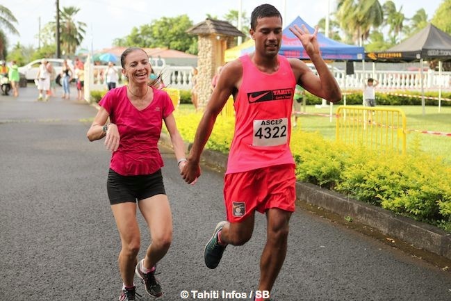 Chez les hommes, Georges Richmond était absent ainsi que la ‘nouvelle star’ de la course à pied, Loic Mevel. Pas moins de 164 couples ont pris le départ de cette course sur courte distance. C’est donc le couple Winsy Tama-Elodie Menou, pourtant d’un club différent, respectivement Central sport et As Punaruu, qui réalisent le parcours en 19’40 devant le couple Louis Ligerot-Sophie Bouchonnet de central sport, qui courent en 20’01.