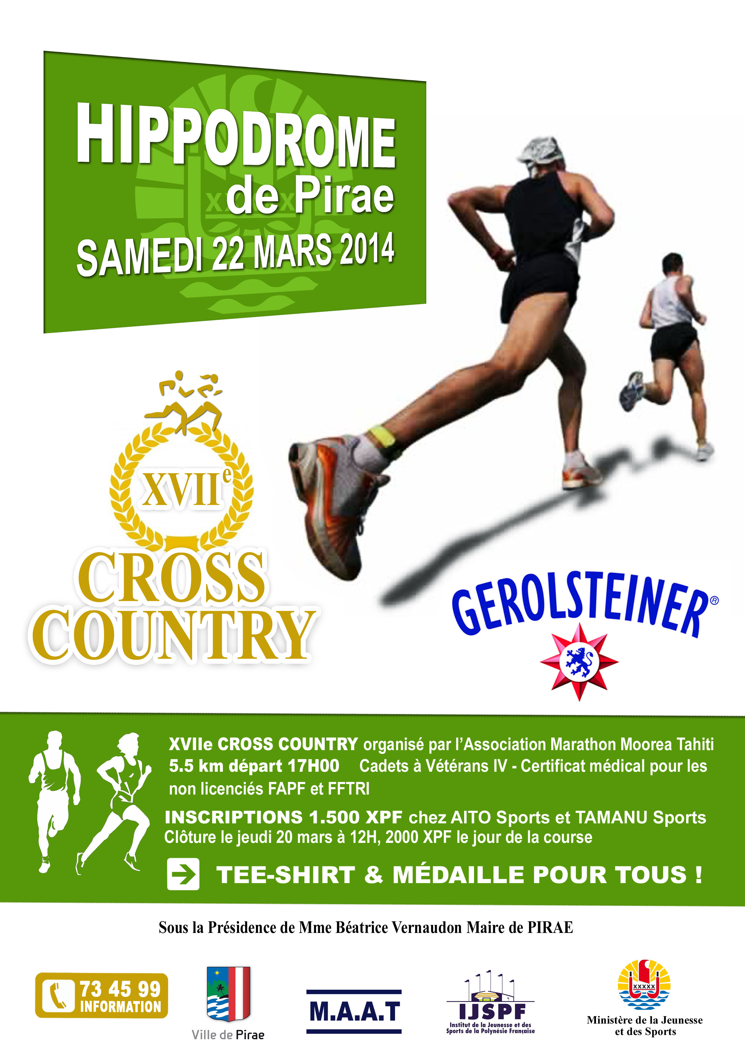 « Le matin il y aura la course des enfants mais les inscriptions sont closes. L’après midi aura lieu la course des cadets à vétérans 4 qui est ouverte aux hommes et aux femmes. Les inscriptions peuvent se faire sur place jusqu’au dernier moment pour un montant de 2000 fcp, réservées au licenciés de la fédération française d’athlétisme, la fédération tahitienne ainsi qu’à celle de triathlon. Pour les autres, c’est possible sous réserve de fourniture d’un certificat médical, comme d’habitude. La course adulte est à 17 heures, 8H30 pour celle des enfants.»