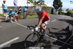 MAHINA, le 3 juillet 2014. La 20ème édition du Tour de Polynésie, la compétition de l'année en vélo sur route, a débuté dimanche dernier par un prologue qui s'est déroulé à Fare Ute. Puis lors de la première étape de 118 km, lundi sur la côte ouest de Tahiti, Benjamin Harvey termine premier, confirmant ainsi le classement obtenu au prologue. Lors de la 2ème étape, mardi, une course en ligne de 121 km sur la côte est, Opeta Vernaudon de l'AS Vénus fait honneur au clan tahitien en réussissant à arriver premier au vélodrome de Fautaua.