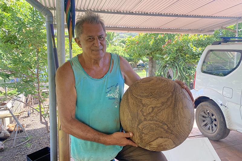 “Je suis né sculpteur”, lance-t-il en plaisantant, évoquant une époque révolue où l'apprentissage d'un métier était un acte de foi, un engagement envers un savoir-faire ancestral. À travers ses récits, les décennies s’effacent, nous ramenant cinquante ou soixante ans en arrière, à une époque où la vie à Nuku Hiva avait une cadence différente, où l'on apprenait un métier pour le métier lui-même. “La vie était bien différente de maintenant. Tout a changé et évolué. Il n’y avait pas toutes les opportunités qui existent aujourd’hui à Nuku Hiva”, raconte-t-il.